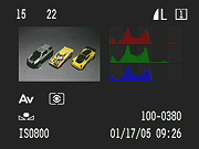 The 2.0-inch, TFT color LCD monitor is used only for image playback and menu viewing, and is made up of approximately 230,000 pixels. A brightness control offers five brightness levels, helpful for improving viewing in excessively dark or bright conditions. Images can be displayed with or without the relevant image information, and the 1Ds Mark II offers four- or nine-image index display modes. A very useful feature is the optional Highlight Alert, which flashes overexposed sections of the image gray/white during playback. An optional histogram display is also available, which is handy for assessing overall exposure, though I've personally found the blinking highlight display much more useful for showing where I've blown out highlights. (The problem with a histogram display is that blown highlights usually represent only a small percentage of overall image area, meaning it's hard to pick them up on the histogram readout. A blinking area on the LCD playback display is pretty hard to miss.)