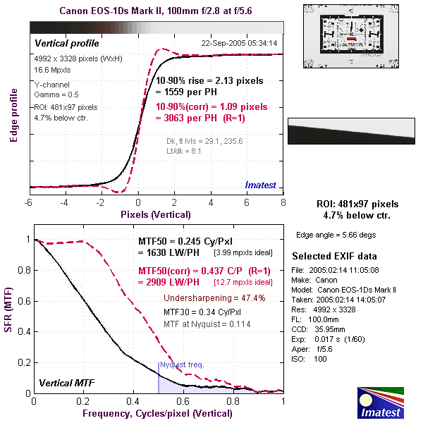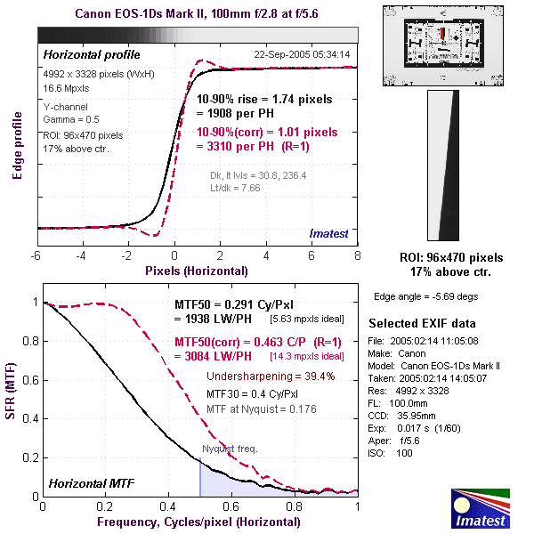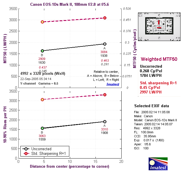 The image below shows the test results from Imatest for the EOS-1Ds Mark II.