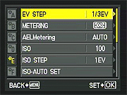 Each metering mode can be "fine-tuned" between -1 and +1 EV in 1/6 EV steps.