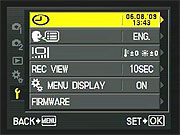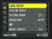 Pressing the Menu button provides access to the camera's full menu system. The following options are available in most camera modes as menu tabs at the left of the display: