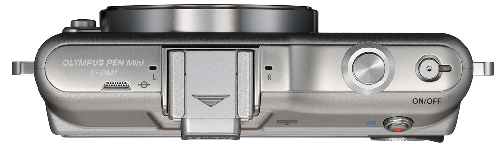Flash. Although the Olympus E-PM1 lacks any internal flash strobe, it provides for external flash strobes courtesy of a hot shoe--but note that it is shared with the accessory port, so use of flash or accessories is an either / or proposition. The E-PM1 comes bundled with an accessory flash which has a guide number of 10 meters at ISO 200 equivalent. Flash exposures can be determined with TTL auto metering, or controlled manually at anywhere from 1/64 to full strength. The E-PM1's hot shoe is compatible with the FL-50R, FL-36R, FL-50, FL-36, FL-20, FL-14, and FL-300R strobes. Flash sync is possible between 1/60 and 1/160 second, and the E-PM1 also allows Super FP flash between 1/125 and 1/4,000 second, if supported by the attached flash. Flash exposure compensation is available within a range of +/- 3.0 EV, in 1/3, 1/2 or 1 EV steps. Finally, the E-PM1 supports four-channel wireless flash with the bundled strobe acting as a master, and off-camera flash strobes configured in up to 3 groups.