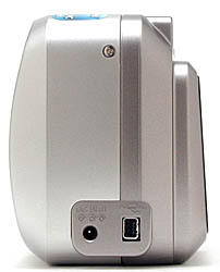 The DC In and USB connection jacks are on the opposite side of the camera, and lack any protective covering. We generally like to see some type of covering over these terminals, as dust and dirt can easily find their way into these small openings, especially on a highly portable camera such as this one. (A minor design strike against the 2600.)
