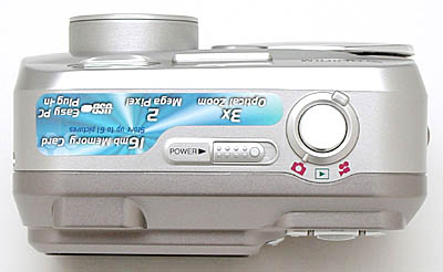 The 2600 Zoom's top panel features the Mode dial, Shutter button, and sliding Power switch. The Power switch is covered with small raised bumps, which give your fingers more traction for sliding the small control.