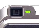 The FinePix 2600 Zoom offers both a real image optical viewfinder and an LCD monitor for composing images. The optical viewfinder's view has a small, black outline circle in the center, designating the autofocus and autoexposure target areas. Two small projections at the top of the viewfinder display help guide alignment for closeup images, but we strongly recommend using the LCD viewfinder for close-in shots. Though there is no diopter adjustment dial for the 2600 Zoom's viewfinder, it does have a fairly high eyepoint, and we were able to clearly see the full frame at a good distance from the eyepiece. Most eyeglass lenses shouldn't pose a problem. A small LED lamp next to the viewfinder reports the camera's status, lighting a solid green when the camera is switched on. The LED flashes green and then lights solid when focus and exposure are set (if the LED continues flashing green, it means the camera cannot focus). The LED glows orange when images are being recorded to the SmartMedia card, and flashes orange when the flash is charging. The LED flashes red whenever the camera is warning of an error (the error message is reported on the LCD monitor).