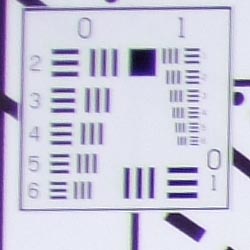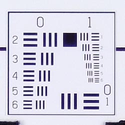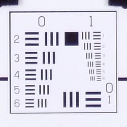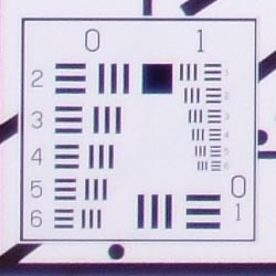 Chromatic aberration is moderate at wide angle, showing about 5-6 pixels of bright coloration on either side of the target lines in the worst case corner. At telephoto, the number decreases to 3-4 pixels, and the effect isn't quite as bright. (This distortion is visible as a very slight colored fringe around the objects at the edges of the field of view on the resolution target.)