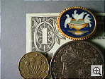 the dollar bill. The coins and brooch were very soft due to the shallow