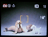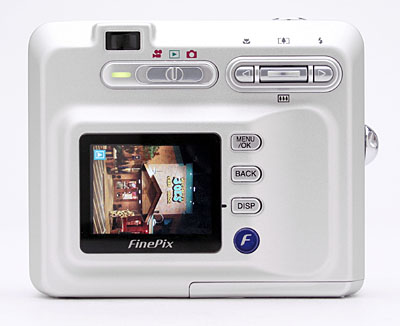 Equipped with a 5.7-17.1mm lens (equivalent to a 38-114mm lens on a 35mm camera), the F410 offers a true, 3x optical zoom. The camera offers apertures of either f/2.8 or f/7, selected automatically depending on ambient lighting conditions and the current ISO setting you've selected. The F410's autofocus uses a contrast-detection system, with a range of two feet (60 centimeters) to infinity in normal mode. A Macro setting changes the range to 0.3 to 2.6 feet (10 to 80 centimeters). In addition to the 3x optical zoom, the F410 also features as much as 4.4x digital zoom, effectively increasing the camera's zoom potential to 13.2x. (The amount of digital zoom available depends on the image resolution selected, with the higher digital zoom levels only available when smaller final image sizes are selected.) I always remind readers that digital zoom decreases the overall image quality because it simply enlarges the center pixels of the CCD image, and shouldn't be relied on for sharp details and high image quality. That said, Fuji's approach is intelligent in that they avoid interpolation in their digital zoom, accepting limits on the amount of magnification in order to preserve the original pixel quality. The F410 has both a real-image optical viewfinder and a 1.5-inch polysilicon, TFT, color LCD monitor for composing shots. An information display on the LCD monitor includes basic camera information, such as the shooting mode and image quality setting, as well as the current image capacity of the memory card and the flash mode. When you half-press the shutter, the LCD display reports the current aperture and shutter speed settings, giving you an idea of what the exposure will be. (While you can't directly set the exposure parameters yourself, I personally find it very useful to know what shutter time the camera is using, as an aid to knowing how careful I need to be to avoid camera movement when shooting in dim lighting.) A set of focus/exposure brackets in the center of the display helps line up shots. You can also enable a grid display for lining up tricky compositions. The grid divides the image area into thirds, horizontally and vertically, making it easier to accurately frame your subject and align vertical or horizontal elements.