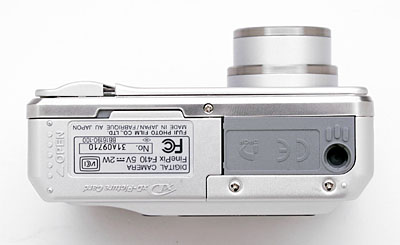 The F410 has a fairly smooth bottom panel, holding the combined battery/memory card slot, as well as the plastic, threaded tripod mount. The small amount of space on the bottom panel keeps the battery and memory card compartment too close to the tripod mount for quick changes of either while the camera is mounted on a tripod. I doubt this will be much of an issue for the vast majority of users though, as the F410 is clearly intended for on the go shooting, as opposed to studio work.