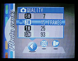 current size/quality setting, and number of images that can be stored on