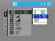Image Display: Turns the post-capture image review screen off, or sets it to a duration of 1.5 or 3 seconds. - Shutter Volume: Adjusts the volume of the shutter noise in three steps, or disables it altogether.