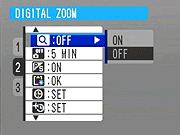 Digital Zoom: Enables or disables the camera's 4.4x digital zoom. If enabled, the camera will pause when crossing the boundary at which the optical zoom is at full telephoto and the digital zoom is enabled. You must let go of the zoom rocker briefly and then press it again to continue from the optical to digital zoom, or vice versa.