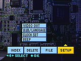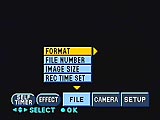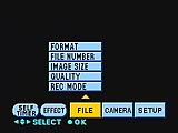 - Rec Mode: selects between Voice (records 5-second sound bytes with each picture), E-Mail (for 320 x 240 JPEG images) and Normal.