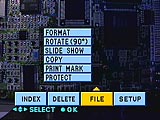 - Copy: copies displayed image to another Memory Stick.