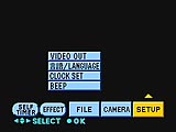 - Setup: offers the following camera settings: