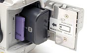When it comes to storing images, the DSC-F505 utilizes Memory Sticks. These tiny cards (about the width of a stick of gum, but a bit shorter) come in 4MB, 8MB, 16MB and 32MB sizes and are easily write protected with a sliding lock on the card itself. (As we write this, the first 64MB memory sticks are reportedly hitting dealer shelves.) The DSC-F505 only runs on rechargeable InfoLITHIUM battery packs (S series) or the A/C adapter (which doubles as the battery charger)