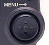 Located beneath the Program AE button, this rocker toggle button has four arrows (up, down, left and right) and a center dot. In all modes, the arrows navigate through menus and the center dot acts as the OK for menu options. In Play mode, the left and right arrow buttons scroll through images. Pressing the down arrow dismisses both the play and record menus while the up arrow recalls them again.