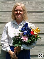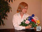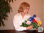 For this test, we shot with the Auto (1237 k), Daylight (1243 k), and Manual (1251 k)white balance settings, choosing Daylight as the most accurate. The Auto setting had some trouble with the overwhelming blue in the image and produced a very warm color balance, while the Manual setting went to the other extreme and produced a cooler image with pale skin tones. Color is good throughout the frame, with a fairly accurate blue value on the Oriental model's robe (a difficult color for many digicams). Good detail and resolution as well.