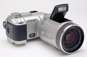 Sony Electronics Inc. has long held a dominant position in the digicam marketplace, with a wide range of models enjoying enormous popularity with consumers. Currently, they're maintaining what's arguably the broadest line of digicams in the industry, with multiple models in a number of distinct product lines. Last year, they rocked the camera world by introducing the F707, a five megapixel model with a tack-sharp Carl Zeiss lens and a host of unprecedented features, all for under $1,000. The F707's infrared-based Night Shot and Night Framing modes and the completely unique Hologram Autofocus created a camera that could quite literally shoot (and focus) in total darkness.