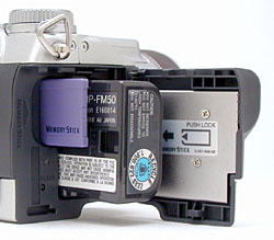 which doubles as an in-camera battery charger. InfoLITHIUM battery packs contain