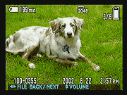 The F717 is also accompanied by a USB cable for quick connection to a PC or Macintosh computer, as well as a software CD containing interface software and USB drivers. The USB connection supports both USB 1.0 and 2.0. Data transfer is very fast: I clocked a download of a 7,353 KB file at 11.3 seconds, a transfer rate of 651 KB/second. This is about as fast as I've measured on any USB-connected camera, but in fact the transfer rate was most likely limited by my 500 MHz PowerMac's USB 1.0 connection, more so than by the camera itself.