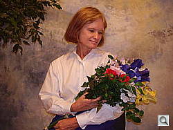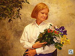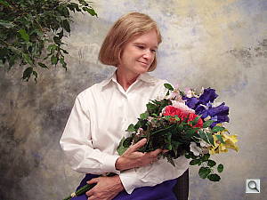 Color balance indoors under incandescent lighting was just a bit warm and reddish overall, resulting in pinkish skin tones. The Olympus FE-110 required a +1.3 EV exposure compensation boost to get a good exposure, which is a little higher than average for this shot. The warm, reddish cast also makes the blue flowers very dark and purplish, which is a common outcome with this shot. Our test lighting for this shot is a mixture of 60 and 100 watt household incandescent bulbs, a pretty yellow light source, but a very common one in typical home settings here in the US.