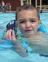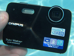 Shooting. The Olympus 550WP is the most difficult camera to shoot with of this roundup. Shortly after distributing three cameras among my three children to test, my four-year-old son William swam toward me holding the 550WP up, "This one doesn't work very good." I thought that summed up my experience with the camera quite well. You can see that moment captured in the image at left. (Fortunately, the Olympus Tough 8000 more than made up for its lesser siblings' shortcomings, and all the kids liked it just fine.)