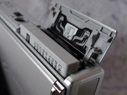 Bottom. A bit better compartment door design than the Nikon S series. The longer-lasting battery leaves room for an SD card, too. Note the tripod mount and USB connector behind it.