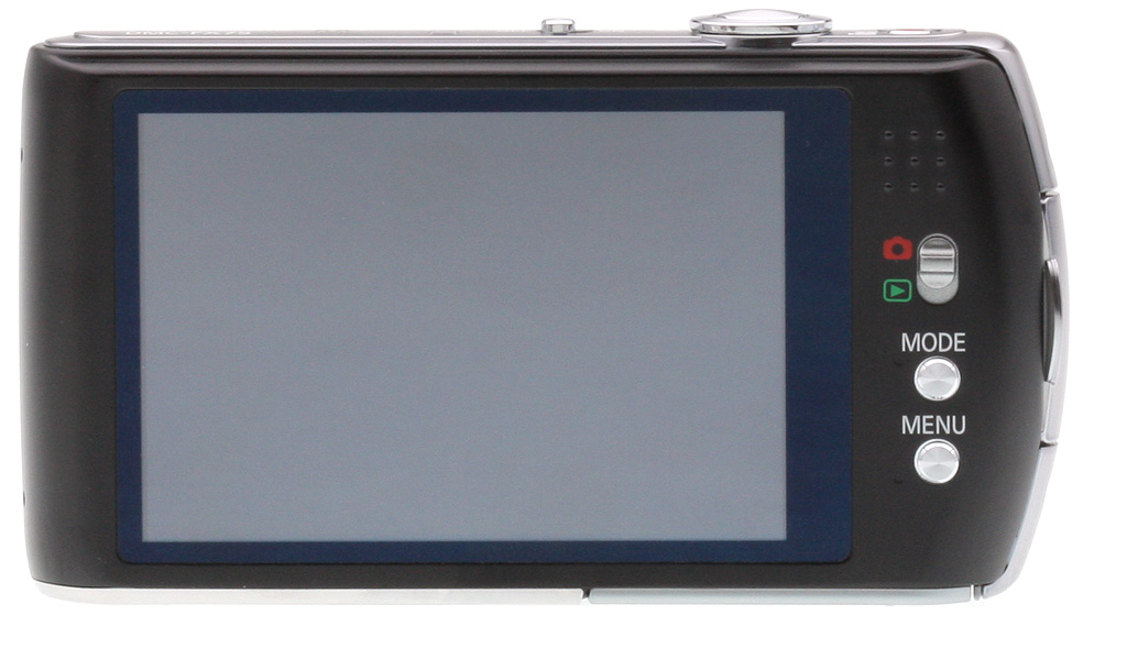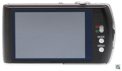 Since this is a touch-screen digicam the number of rear controls is a bare minimum. You'll find the 3-inch LCD rated at 230K dots. In the Auto Power LCD mode, the screen is usable even in direct sunshine but it tends to smear in low light. To the right of the screen is a switch to change between Record and Playback, as well as Mode and Menu keys. There's no four-way controller with center set button as almost everything is handled via the touch screen. This is not such a good thing, as I'll detail shortly.