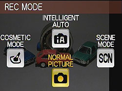 Modes. This is no Nikon D3x, so even the least technically inclined person in the world can pick it up and start shooting. Turn it on, hit the mode key and you'll see four icons: Intelligent Auto (iA), Scene Mode, Normal Picture (similar to Program AE) and a bizarre one, Cosmetic Mode. There is no Movie mode as you simply press the red button on the top to start and stop recording. Intelligent Auto is no-brainer photography. The camera decides what is in front of it and adjusts accordingly. While other digicams may use more or less, the Panasonic FX75 chooses between 7 (i-Portrait, i-Scenery, i-Macro, i-Night portrait, i-Night Scenery, i-Sunset, i-Baby), the most common situations casual shooters encounter. This system works well as it does with other top manufacturers' models.