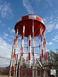 504mm. If you want to zoom in to count the bolts on one of the tower's portals, that's no problem with the Panasonic FZ18.