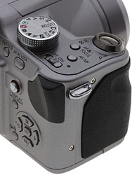 Handling the camera was a pleasure. The grip is fully rubberized with the textured surface wrapping around the side of the camera all the way up to the lens barrel. The FZ18 felt comfortable in my smaller hands, especially because of the finger indentations, which allow you to properly position your handhold and keep a firm grip on the camera. The black rubberized grip also provides a nice visual accent to the battleship grey body, but unfortunately there's not much space between the grip and the lens barrel, so those of you with larger hands may feel a little cramped.