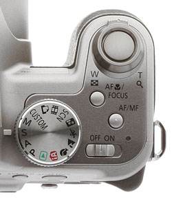 Top. A good grip is topped by the shutter button and zoom control, with the Mode dial and power switch at the ready.