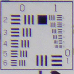 The Panasonic FZ18's chromatic aberration is very low at wide angle, showing only a couple of pixels of very faint coloration on either side of the target lines. However, at telephoto, the effect is much stronger and brighter, with an almost neon appearance that is noticeable in images with high-contrast elements near the corners. Still, this is not a surprise in an 18x lens. This distortion is visible as a slight colored fringe around the objects at the edges of the field of view on the resolution target.