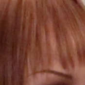 Detail. The crop above right shows moderate noise suppression, as the darker areas of hair show less distinct detail. However, individual strands remain fairly well defined in the more moderate shadows. Noise-suppression systems in digital cameras tend to flatten-out detail in areas of subtle contrast. The effects can often be seen in shots of human hair, where the individual strands are lost and an almost "watercolor" look appears.