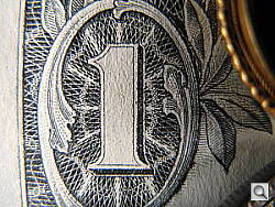 The Canon G7 performed reasonably well in the macro category, capturing a tiny minimum area measuring only 0.98 x 0.74 inches (25 x 19 millimeters). The level of fine detail right in the center is excellent, as even the tiny fibers of the dollar bill are distinct. There's plenty of softness radiating out from the center of the lens, however, strongest on the left side of the frame. (Most cameras have some softening in the corners in macro mode, but this is considerable.) The flash exposure looks good as well, until you look in the upper left corner and see the very bright area. Clearly, the flash is so close to the lens that it casts a shadow over the subject, which the camera compensates for quite well, producing a reasonably well-exposed shot. Draw your own conculsions, but the further you get from your subject, the effect will increase. Better to use external light sources and not shoot this close.