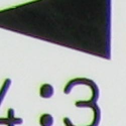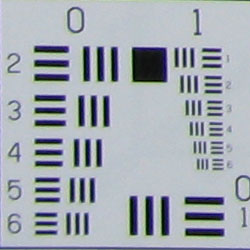 Chromatic aberration is moderately high at the wide angle lens setting, with about 10-11 bright pixels. At telephoto, distortion is much lower, and less bright. This distortion is visible as a very slight colored fringe around the objects at the edges of the field of view on the resolution target. However, the effect is less noticable given the camera's high resolution, especially at the usual 8x10 enlargement size. It's obviously a greater factor if you crop to include one of the corners.