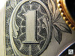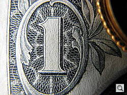 The Canon PowerShot G9's macro setting performed quite well, capturing a very small minimum area of 1.00 x 0.75 inches (26 x 19 millimeters). Exposure is a bit uneven, due to the very close shooting range, and the three dimensional structure of the target (the brooch and one of the coins are shading the dollar bill). Detail and resolution were both excellent, particularly in the center of the frame. There's quite a lot of softening in the corners from the lens, as well as some chromatic aberration along the left side of the frame. (Most cameras have some softening in the corners in macro mode.) The G9's flash throttled down for the macro area fairly well, but the exposure was again quite uneven. Plan on using external lighting for the very closest macro shots with the G9, and even then, you may have trouble getting the light in onto your subject given how close the G9 focuses. All in all, a very good performance, better than most cameras out there.