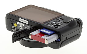 You might think we'd be used to it by now, but the octopus cable with USB and AV connectors that plugs into the bottom of the Sony H20 still irks us. For one thing, you have to sit the camera on its face (in this case on the lens cap) to cable connect to your computer. For another, it isn't an HDMI cable so for best results with your HDTV you'll want to buy one. Look for the VMC-MHC2 HD output adapter cable.