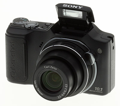 Following in the footsteps of last year's H10 model, the compact, high-zoom Sony H20 adds more resolution, a 720p movie mode, and an array of intelligent capabilities that were lacking in the previous model. Based around a 1/2.3-inch SuperHAD CCD image sensor with 10.1-megapixel resolution coupled to a Carl Zeiss Vario-Tessar branded 10x optical zoom lens, the Sony H20 offers equivalent focal lengths that range from a rather tight 38mm wide angle to a powerful 380mm telephoto. Maximum aperture varies from f/3.5 to f/4.4 across the zoom range, and macro focusing is possible down to a minimum of two centimeters. The Sony H20 forgoes any optical viewfinder in favor of a 3.0-inch LCD display with 230,000 dot resolution. The Sony Cybershot H20 offers ISO sensitivity ranging from 80 to 3,200 equivalent, and includes both true mechanical image stabilization -- a must for a lens with this kind of reach -- as well as Digital Image Stabilization which functions by raising the camera's sensitivity (and along with it, the noise levels) to achieve a higher shutter speed and reduce motion blurring.