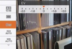 Menu System. In Record mode, you have to slip into the Menu system to change EV compensation.