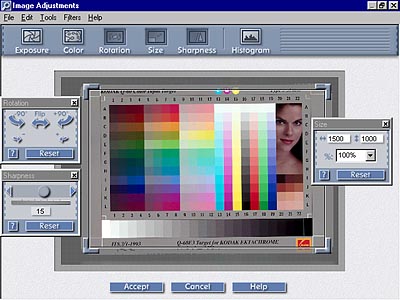 This touches on one of the few areas in which we'd like to see further enhancements in the HP software: You can frequently make very good overall color-balance adjustments in an image simply by stretching the red, green, and blue histograms separately to fill the available tonal range. This is a function we frequently use in Photoshop's (TM) "levels" control panel. It would be nice to have similar control here, either via "white point/black point" settings, or through the ability to manipulate the histogram display more directly. Still, we found the S20's software controls both powerful and very easy to use: They're a good compromise between providing the control needed to do useful work, but not burdening the user with unnecessary complexity.