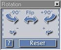 Icons in this panel (shown at right) let you rotate the whole image by 90 degrees in either direction. Pressing any of the "rotate" controls repeats the operation as many times as you wish, so you can turn an upside-down image 180 degrees by just pressing one of the "rotate 90" buttons twice. The "flip" control handles mirror-image reversals due to upside-down film, and the final two let you "nudge" the orientation of the image in roughly 1-degree increments. As we mentioned earlier, while the "nudge" controls give you pretty fine adjustments, we would have liked them to be a bit finer yet. On the other hand, if all we're talking about is a half-degree of rotation, you can probably get that much just by changing how you feed the slide, film, or print.