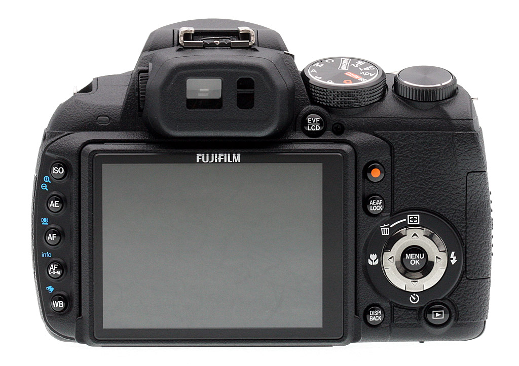 Though its designed to look like a digital SLR, the Fujifilm HS10 does not have a true optical viewfinder. There is, however, a small electronic viewfinder along with a 3-inch tilting LCD screen with 230,000 dots of resolution. A sensor detects when the user brings their eye toward or away from the electronic viewfinder and then automatically switches between the EVF and LCD screen as appropriate.