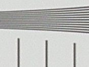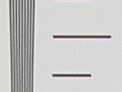 Geometric Distortion: In JPEGs, there is very little distortion at both wide-angle and telephoto, with both showing about 0.06% pincushion distortion (about 1-2 pixels). A very slight dip in the target lines is visible, though it isn't strong enough to detract from the image overall.