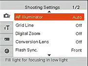 The Shooting options, for example, include whether to display grid lines or which flavor of digital zoom to use. You can also enable a two-second Auto Review and save the image's orientation information with the image, among others. And you can set the Flash Sync timing to front or rear curtain.
