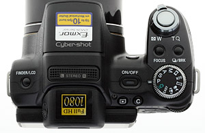 To the left of the Mode dial is the elongated and recessed Power button. Power buttons tend to be the least well-designed part of any camera, but the Sony HX1's Power button was not a problem.
