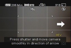 Sweep Panorama mode creates a panoramic image in the camera of up to 224 degrees with a single press of the Shutter button and either a horizontal or vertical sweep of the lens across the scene.