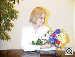 For this test, we shot with the automatic (1117 k) and daylight (1119 k) white balance settings, which produced nearly identical results, the daylight setting a bit magenta, the daylight a bit green. The large amount of blue in the image often tricks digicams into overcompensating, but the i700 did a pretty good job. The i700 slightly overexposed the shot, resulting in a rather pale-looking Caucasian model. Other color is good though, and the blue of the Oriental model's robe is well-saturated and shows no tendency to go purple, a common problem with digicams.