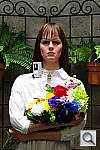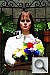 • Overall color: Matching summer sunlight here in the South, the lighting in this scene is a bit more yellow-tinged than that in many parts of the country, or in the fall or winter. - So there may be an overall warm cast to the color. That said though, there's a fair range of color represented in the bouquet, presenting a tough challenge for the cameras. For some reason, the blue flowers seem particularly hard to handle, with many cameras rendering them as purple. (In real life, they're a light shade of navy blue, with just a bit of purple in them.)