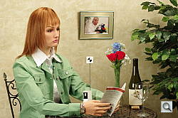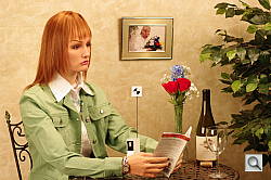 Detail. The crop above right shows some minor noise suppression in the darkest areas of the model's hair, where a few individual strands are blurred together in the darker areas. The camera's overall response here is better than average, especially considering the 14.5-megapixel resolution. Noise-suppression systems in digital cameras tend to flatten-out detail in areas of subtle contrast. The effects can often be seen in shots of human hair, where the individual strands are lost and an almost "watercolor" look appears.
